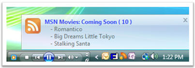Den første funktion er en lækker Aero-agtig pop-op nede i systembakken, når dine yndlings RSS-kanaler har nyheder.