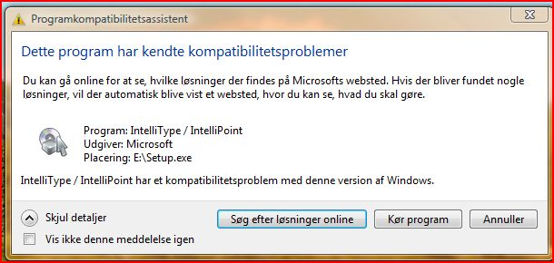 Software virker ikke på Vista