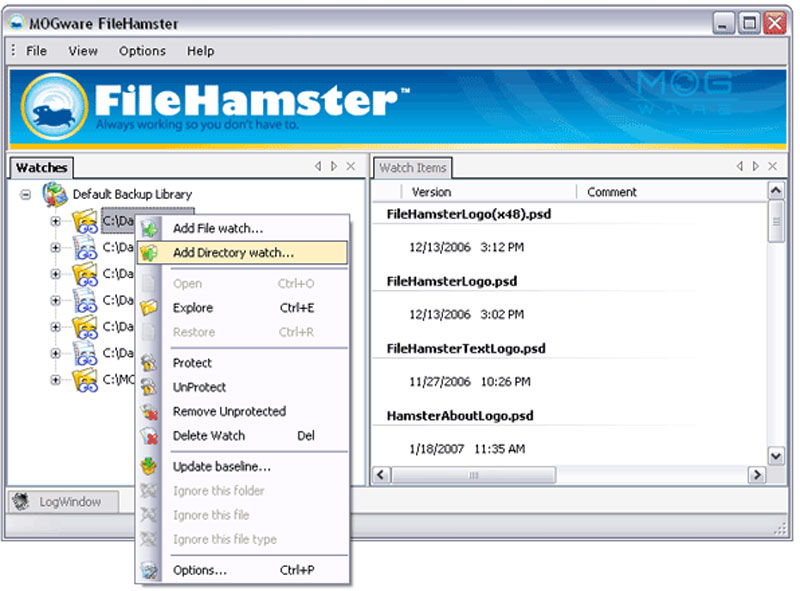 Med det fikse lille gratisprogram fra MogWare kan du lave real-time backup og arkivere dine dokumenter, mens du arbejder. Samtidig kan du holde øje med specifikke dokumenter på din harddisk og automatisk lave backup, når disse dokumenter bliver ændret.