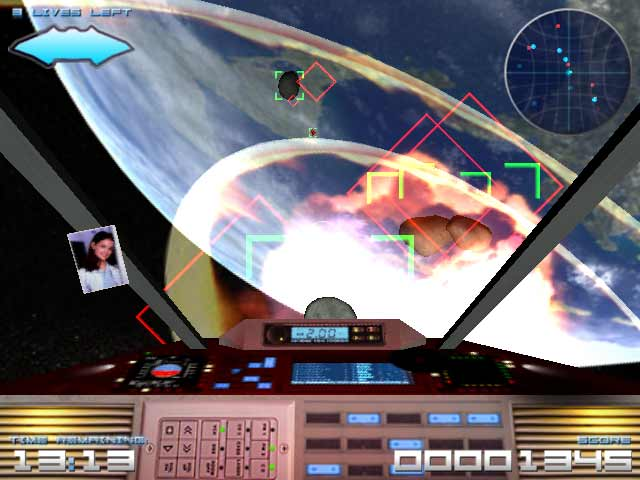 Et stort asteroidefelt er på kollisionskurs med jorden, og det er op til dig at skyde dem alle sammen i smadder samtidig med at alle Jordens kommunikationssatelitter skal forsvares. Problemet med asteroider er bare, at de bryder op i flere mindre asteroider, når man skyder dem, så det bliver hurtigt et omfattende skydearbejde.
