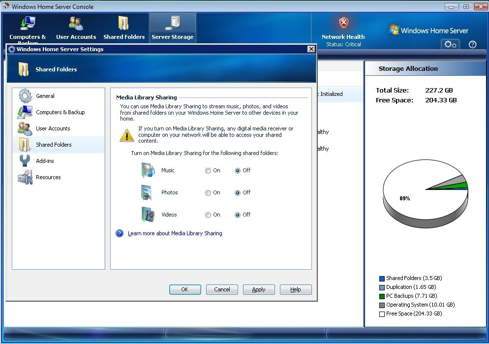 Systemet har såmænd også stort set samme funktionalitet som det professionelle serversystem. Du vil også sagtens kunne betjene Windows Home Server via den originale Windows Server 2003-grænseflade, hvis du virkelig gerne vil.