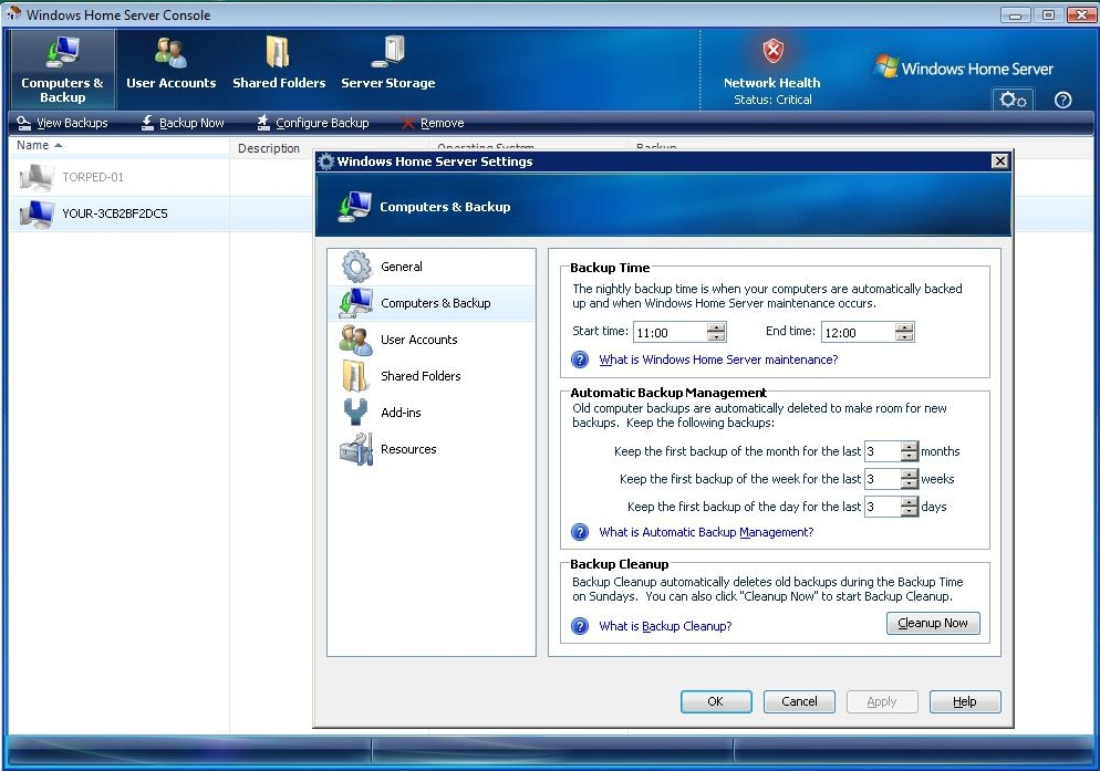 Windows Home Server tager backup af alle tilsluttede Windows-maskiner en gang i døgnet. Så kan hver enkelt computer nemlig lynhurtigt kan reetableres via server-installationen i tilfælde af harddisknedbrud eller virusangreb.