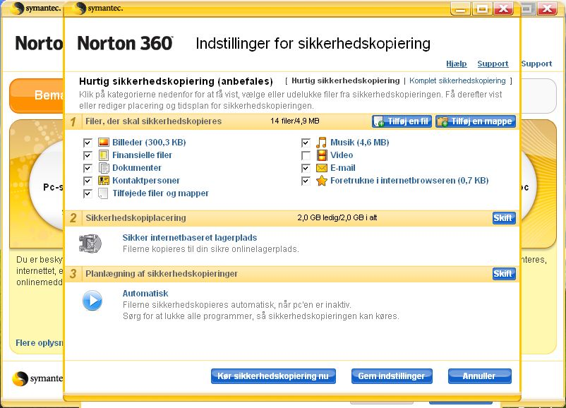 Det bliver der sådan set ikke lavet om på med nyeste skud på stammen, Norton 360. Men ud over antivirus, firewall og netværksbeskyttelse, indeholder Norton 360 også – som noget nyt – en funktion til automatisk sikkerhedskopiering.