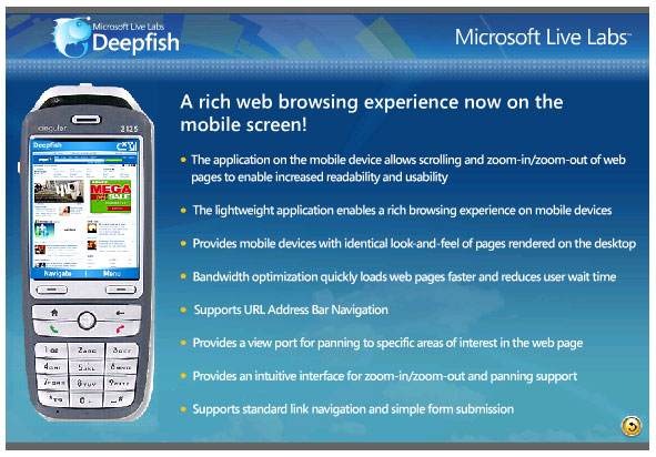 Forskellen er dog ifølge Dr. Gary William Flake, som er leder af Microsoft Live Labs, at Deepfish betyder langt hurtigere surfing på de mobile enheder, da Deepfish kun henter de dele af en webside, som brugeren zoomer ind på.