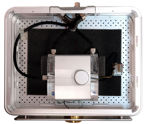 For hvor Corsairs løsning var lavet af plastic og havde en tendens til at støje, så er SilveStones lavet i flot aluminium og næsten fuldkommen lydløs. Det skyldes at selve kabinettet fungerer som en stor køler, mens pumpen til vandet er placeret inden i midten af kabinettet. Det meste af kabinettet består derfor at tomrum og det gør køleren nogenlunde at transportere.
