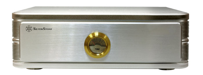 Kabinettet i sig selv ligner mest en hifi-forstærker og fås i sølv og sort finish, vi valgte den sorte og det fortryder man ikke. I midten er der placeret en rund analog måler der viser vandets temperatur. Det er meget smart, men det man egentlig har brug for er cpu’ens overfladetemperatur, men det må man så finde med det software der af og til følger med motherboardet.