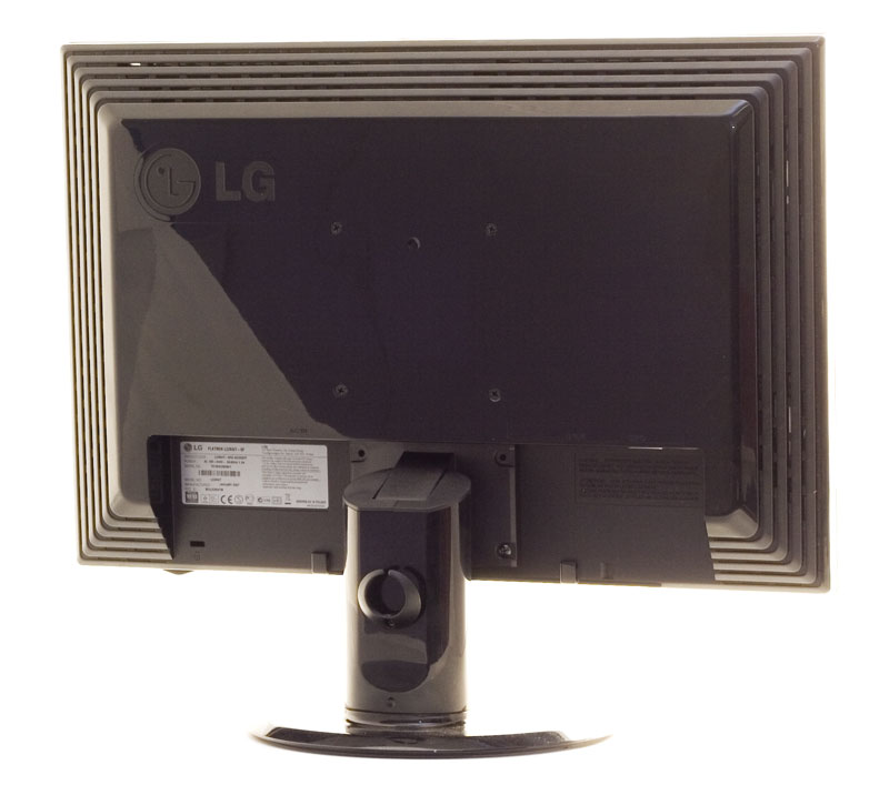 LGs nydelige testdeltager har ligesom Dells hverken USB-porte, højttaler, højdejustering eller tilsvarende fine detaljer. Man kan dog indstille vinkel i forhold til bordpladen samt svinge sokkelen omkring sin lodrette akse.