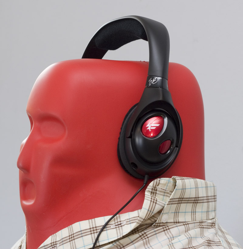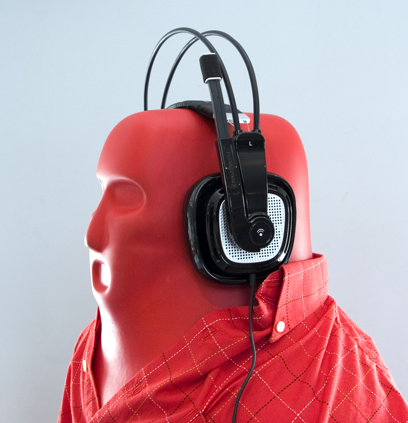 Det skyldes deres særegne design, hvor hovedbøjlen er todelt, sådan at den nederste, der hviler på hovedet, er ophængt i wirer. Samtidig er selve højtalerne firkantede, skinnende sorte og testens største.
