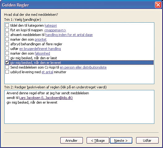 Klik nu på Næste-knappen to gange og skriv til sidst den nye regels navn i Trin 1-feltet. Afslut processen ved at klikke på Udfør og derefter OK.