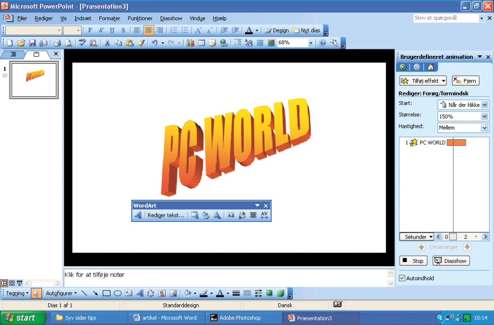 Et billede, der fylder et helt dias, skal ikke have flere end 1.024 × 768 pixels.