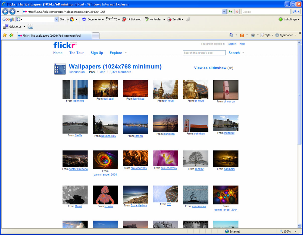Kan du ikke beslutte dig for det bedste baggrundsbillede, så er fotodelingstjenesten Flickr.com måske et godt sted at starte. Her er, i skrivende stund, 16.865 billeder, som er markeret som baggrundsbilleder med en opløsning på minimum 1.024 x 768 pixels.