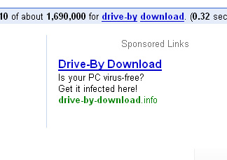 "Drive-By Download. Is your PC virus-free? Get it infected here! drive-by-download.info"?
