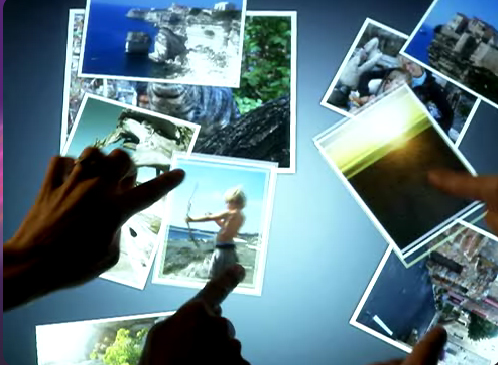 Her kan familien virtuelt jonglere med feriebilleder og videoklip, der kan forstørres og flyttes rundt med et par tryk.