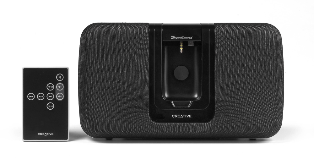 Creative har haft held med designsprøjten. TravelSound er en pæn, lille højtaler på 23,5 x 5,5 x 13,5 centimeter.