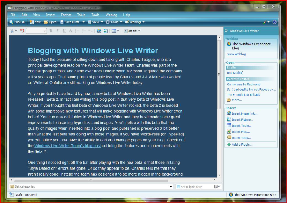 Med Windows Live Writer kan du skrive blogindlæg og publicere dem på flere blogs samtidig. For eksempel Windows Live Spaces, Community Server og WordPress.