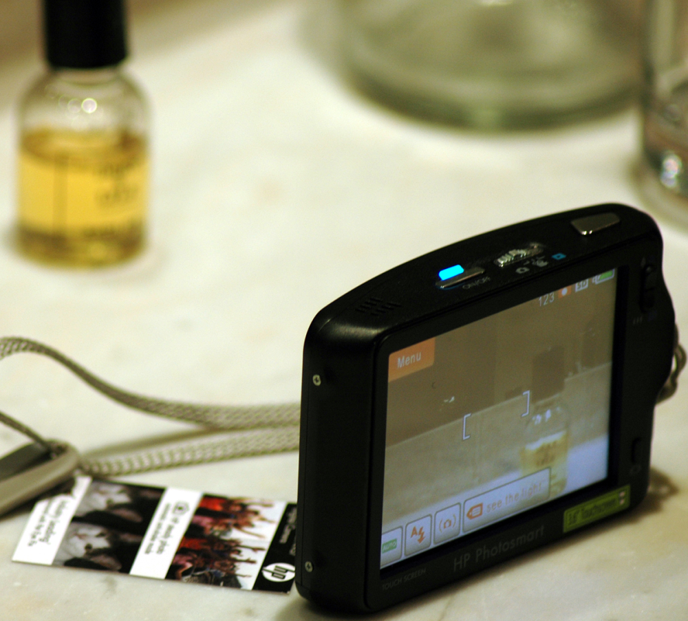 Som så mange andre LCD-skærme er HP's ikke særlig glad for skarpt solskin, og derfor er det svært at se ens motiv eller kigge allerede gemte billeder igennem.