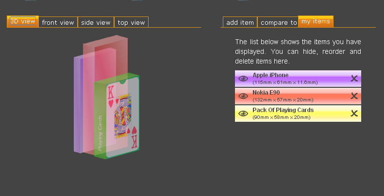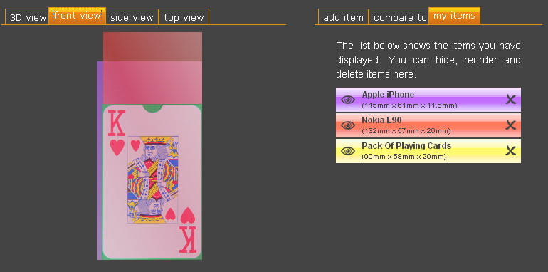 De vises efterfølgende grafisk på computerskærmen side om side, og derfor kan du hurtigt få et overblik over, om den nye iPhone eksempelvis passer til bukselommen.