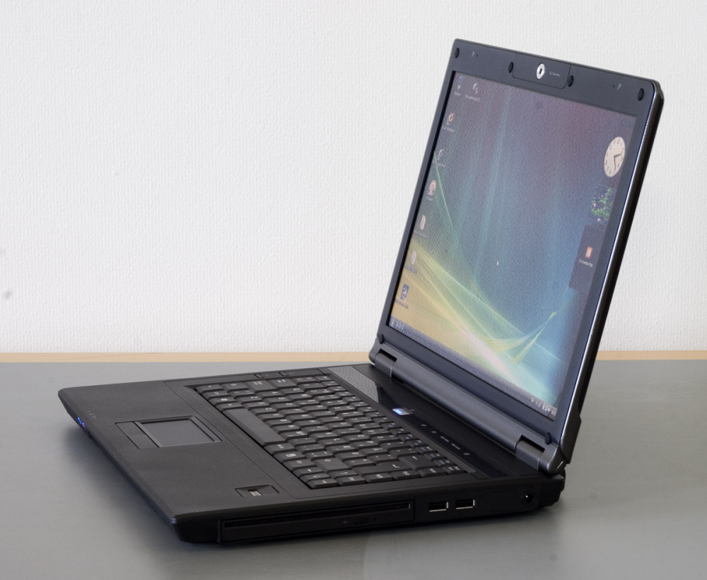 Men noget tyder på, at designeren bag Znote 3415W for en gangs skyld har husket at drikke sin morgenkaffe, for her er tale om en sjældent stilren maskine. Med sit gennemført sorte kabinet og det diskrete, trykfølsomme genvejspanel over tastaturet ligner maskinen en blanding af det bedste fra HPs nye designserie og IBM/Lenovos klassiske ThinkPad-linje. Det blanke, sortnistrede låg er måske en smule tykt bag ørerne, men falder dog godt ind i helheden.