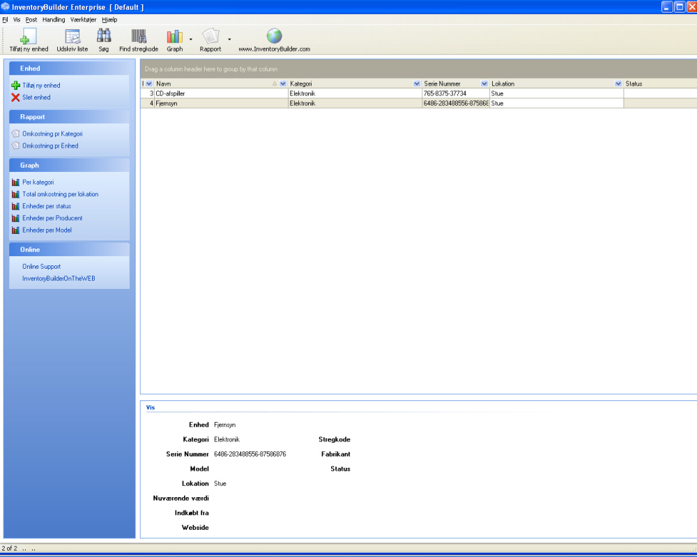 I InventoryBuilder kan du gemme informationer om tilstand, model, serienummer, købsdato, pris og meget mere for den enkelte genstand, så det bliver nemmere at finde ud af, hvad der er blevet stjålet, detaljerne om genstanden og dermed måske nemmere at få erstattet.
