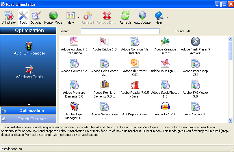 Revo Uninstaller har også en række yderligere praktiske funktioner som: