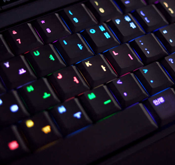 Med det sorte bliver bogstaverne kun oplyst, mens det hvide sørger for, at hele tasten lyser op, som var det juleaften.