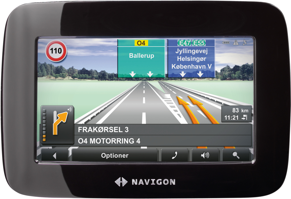 Navigon har samtidig indbygget en "vognbaneassistent", som også i god tid angiver, hvilken vognbane, man skal lægge sig i, for at komme den rigtige vej.