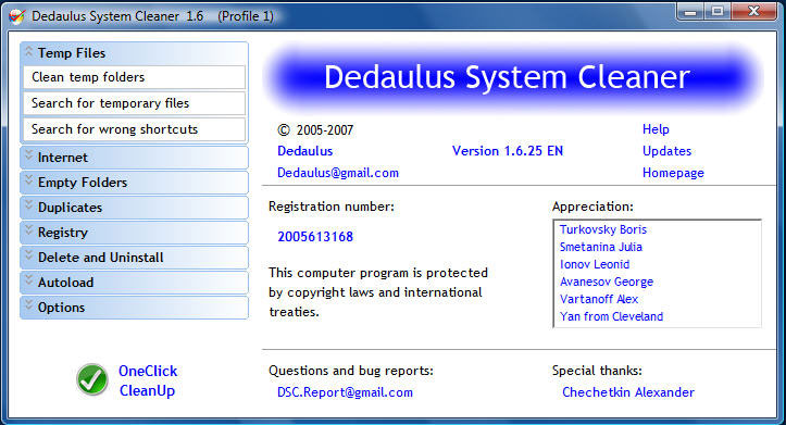 Download det gratis program Dedaulus System Cleaner her.