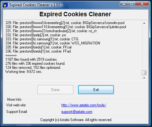 Heldigvis har cookies ofte en udløbsdato. Efter denne dato virker de ikke længere, men ligger bare og fylder en smule. Dette lille program gør nøjagtigt, hvad titlen antyder, det rydder op i de udløbne cookies.