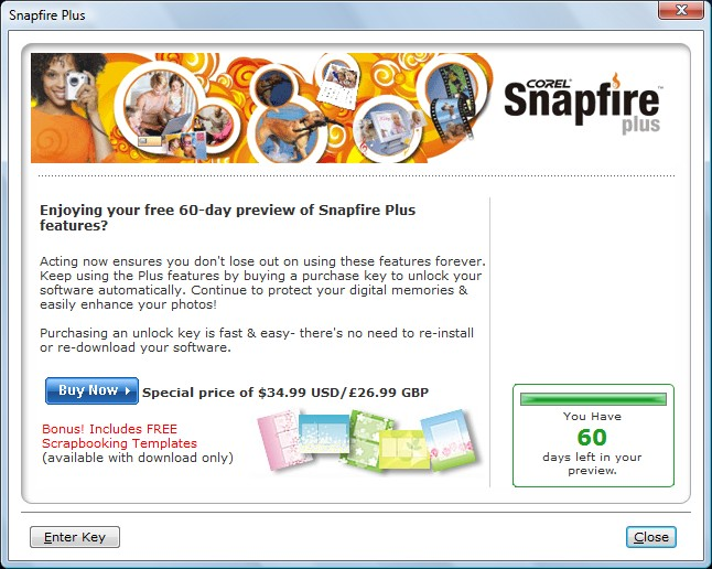 Det er meget fint, men det viser sig, at Snapfire kun er en prøveversion, der skal købes for 35 dollar efter 60 dages brug.