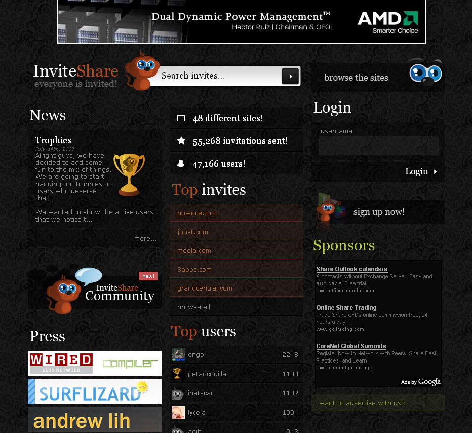 Så kan man prøve at surfe på nettet og lede i forummer og blogs i håbet om, at man kan skaffe en invitation på den måde. Eller man kan prøve at klikke ind på http://www.inviteshare.com