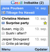 En af de største e-mail-udbydere er Googles Gmail-tjeneste - www.gmail.com - der også er kommet i en mobil version. Man henter blot et lille program ved at åbne mobilens browser og går ind på http://gmail.com/app. Programmet fylder 156 kilobytes og installeres meget let og hurtigt ved blot at følge vejledningen.