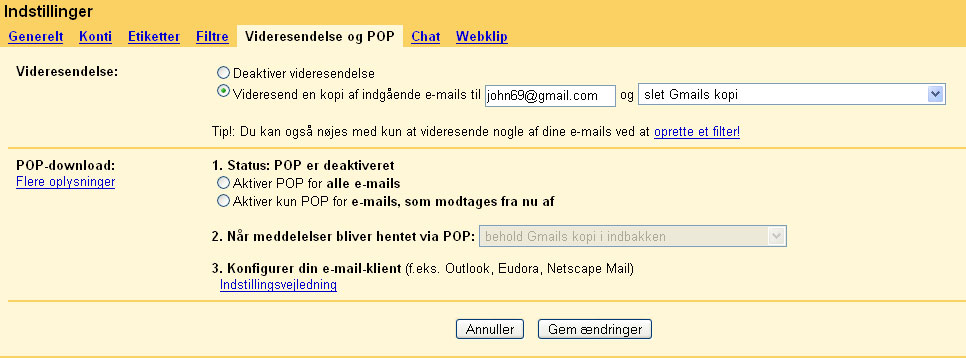 Nu vil alle nye e-mails til din Gmail blive videresendt til din nye konto, og din indbakke vil forblive uændret.