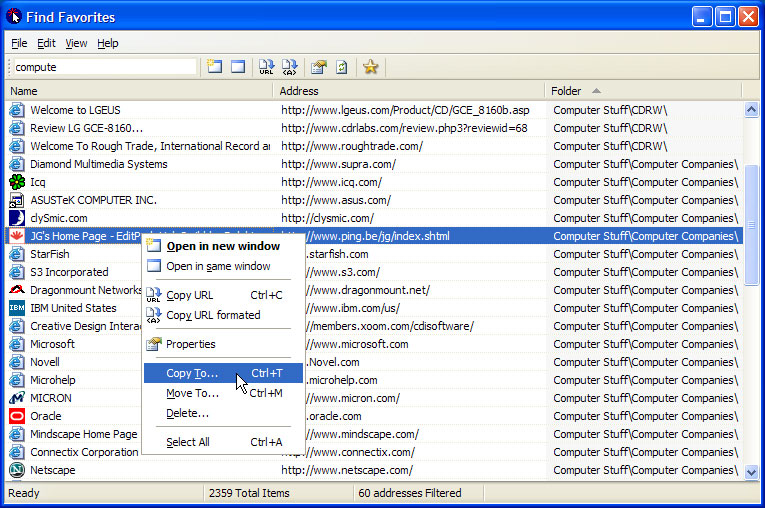 Det er et lille program, der har en oversigt over dine foretrukne, som du kan søge i. Programmet søger både i navn, webadressen og navnet på den mappe i foretrukne, som linket ligger i.