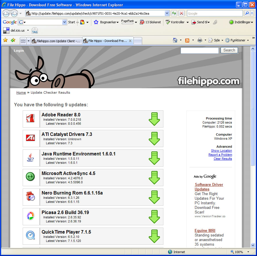 Filehippos Update Checker er en lille exe-fil, som du klikker på, og derefter tjekker den dine programmer på computeren. Du får en oversigt over manglende opdateringer og kan for eksempel vælge at få en særskilt liste over beta-versioner.