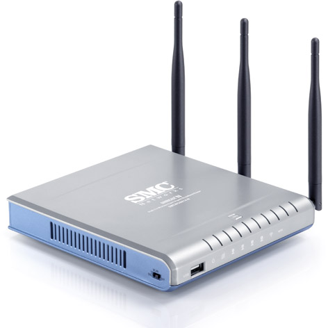 Først SMC's Barricade N-serie, hvor vi testede WBR14-N modellen. Den klarede sig ganske glimrende og havde gode resultater med den nye N-teknologi. Til gengæld klarede den ikke G-teknologien specielt godt. Dens resultater svingede helt op til dobbelt så langsom som de andre produkter, når den skulle overføre med G-teknologien. Lidt problematisk, da de fleste computere og andre enheder der skal forbinde med den, stadig benytter den gamle G-teknologi.