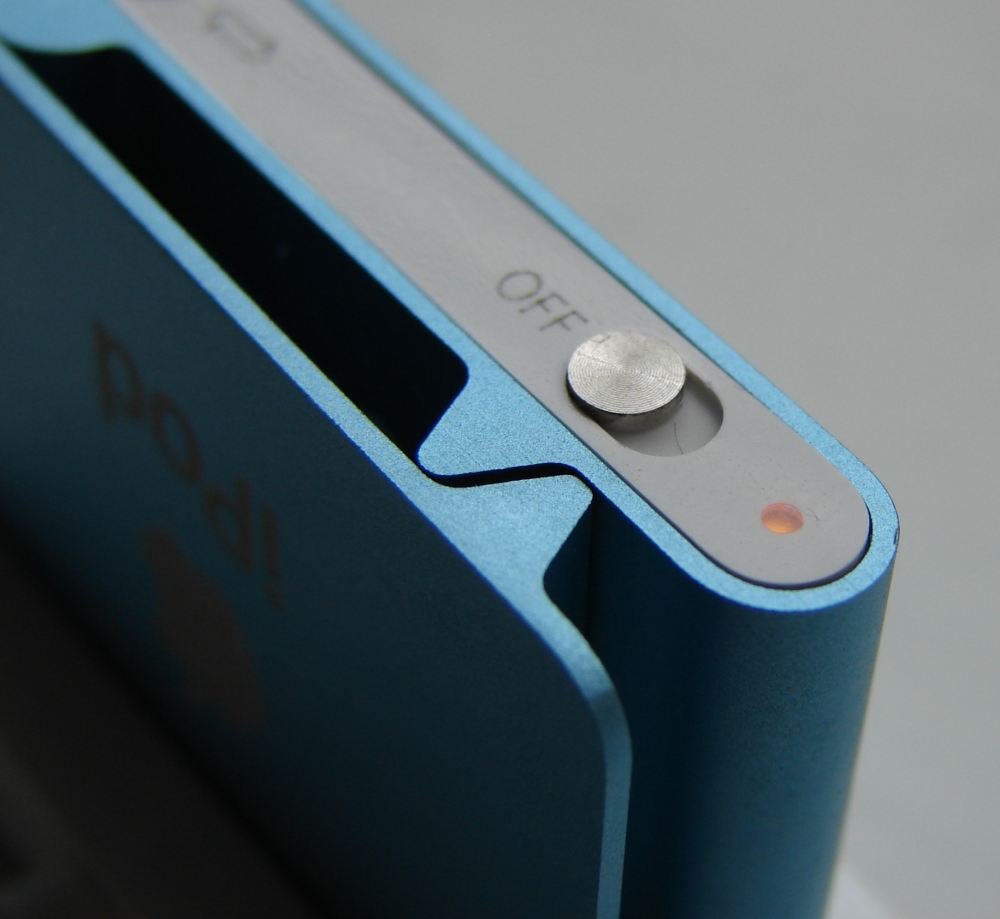 Det berømmede klikhjul er afløst af en ring med fire knapper: frem, tilbage, afspil/pause samt lydstyrke op og ned. I bunden sidder et par bittesmå metalliske skydeknapper, der dels tænder og slukker afspilleren - dels styrer den shuffle-funktion, som har lagt navn til apparatet.