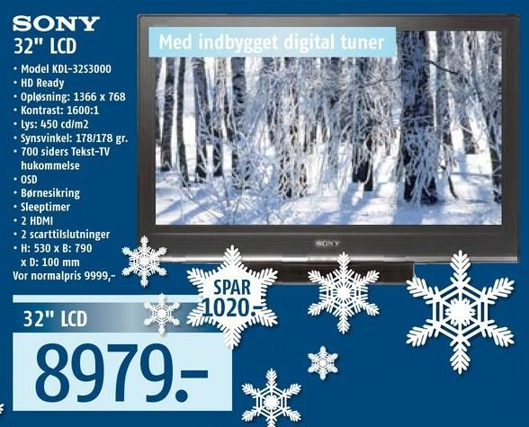 De fleste gennemskuer hurtigt, at her er tale om et tv baseret på LCD-teknologi, hvor panelet har et diagonalmål på 32 tommer. Hvilket passer fint til en mindre stue, hvor man sidder to-tre meter fra apparatet.