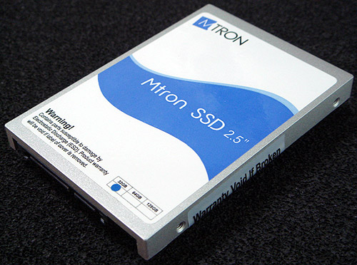 Flashdisken var en Mtron MSD-SATA6025-032 på 32 gigabyte med SATA 1.0-interface og en opgivet gennemsnitlig søgetid på 0,1 millisekund.