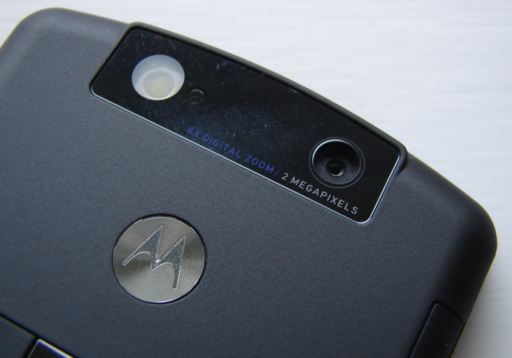 Mobilen føles som kram - med bagside i gummiagtig plast. Sprækken til det medfølgende hukommelseskort (512 megabyte MicroSD) er flot hengemt bag en næsten usynlig klap. Designet er enkelt og nydeligt - med diskrete stiltræk fra Razr-serien. Og det isblå baglys ser som altid køligt ud.