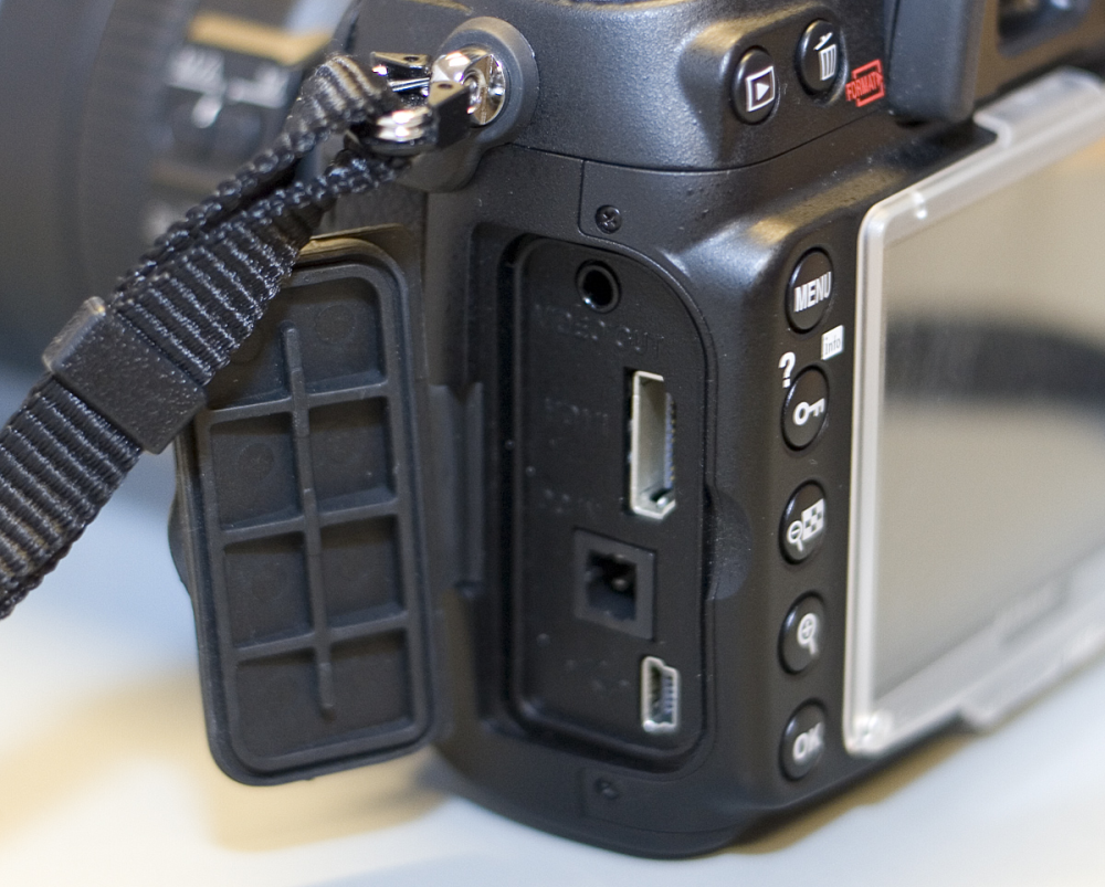 Mange tidligere spejlrefleksmodeller har haft composite-udgang, der også kunne forbindes til fjernsynet, men det så sjældent særlig kønt ud, og indlæsning af fotos kunne tage en evighed. Nikon D300 har fortsat denne mulighed, men forbindelsen via den nye HDMI-port er klart at foretrække.