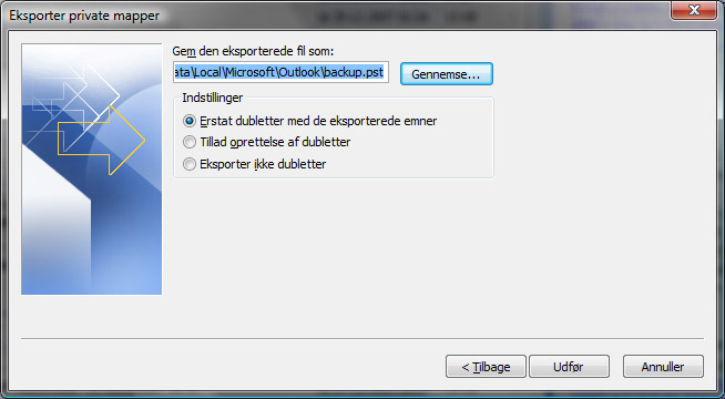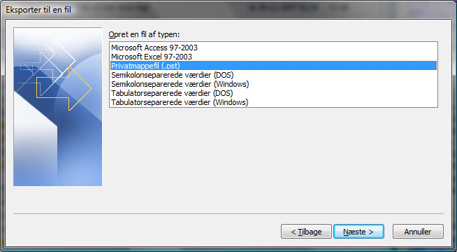 3. Vælg nu punktet Privatmappefil (.pst)