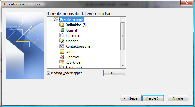 4. Vælg nu det allerøverste punkt kaldet Private mapper og husk at klikke i boksen Medtag undermapper.
