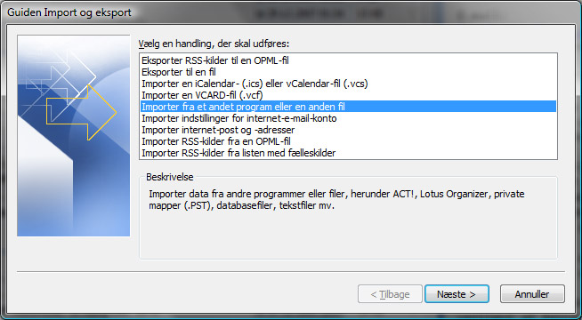 2. Vælg Importer fra et andet program eller en anden fil.