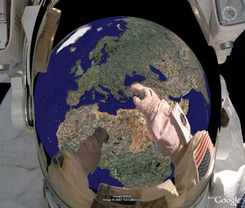 Hvad med at lege astronaut i Google Earth? En smart feature giver dig mulighed for at bruge Google Earth og Sky som om, du er en astronaut. Synet er det samme som normalt, men det er en morsom lille tilføjelse.