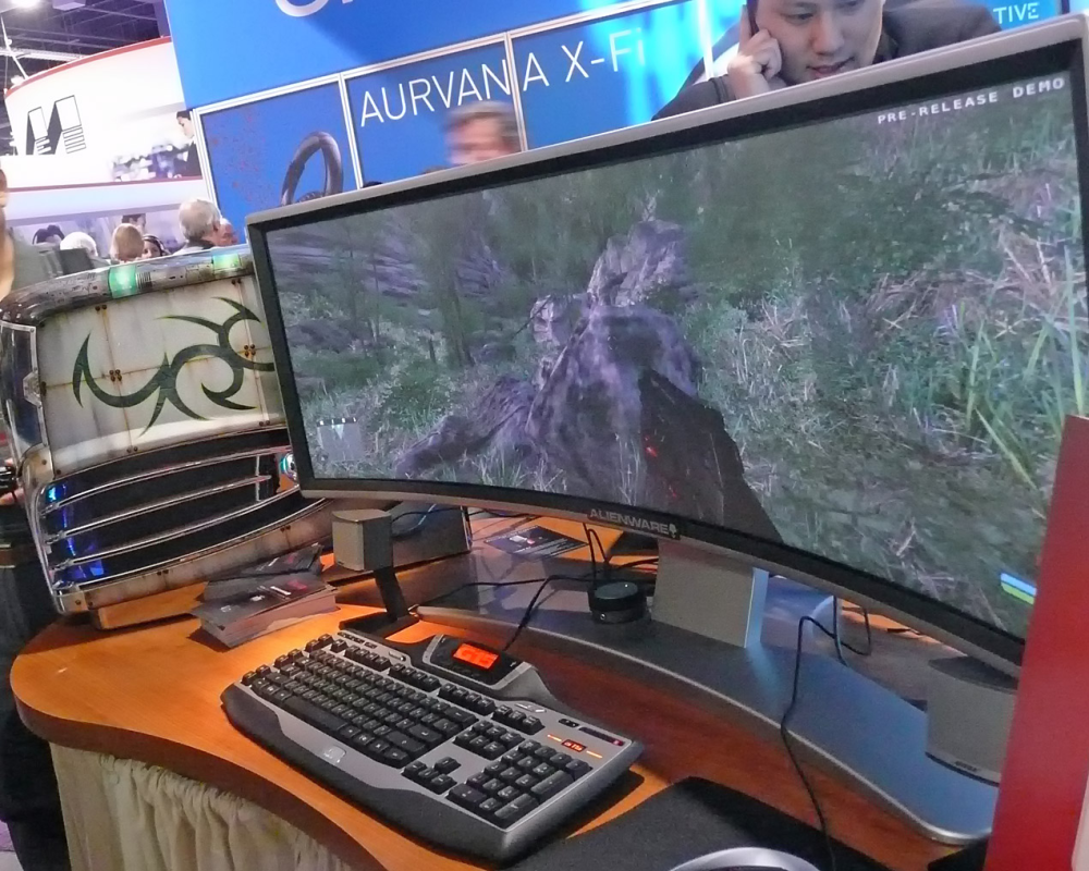 Med en opløsning på 2.880 x 900 pixels og en bredde, der både kræver krumning og et fuldt skrivebord for at kunne overskues på nært hold, må den kommende rear projection monster monitor siges at være i en klasse helt for sig selv.
