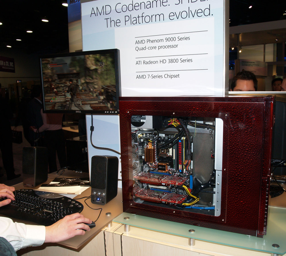 AMD præsenterer på CES sin nye Spider-platform bygget over AMD Phenom 9000 quad-core processor med egen ATI Radeon HD 3800 grafik bygget til HD game performance og 1080p HD video. Som det ses under glasset, er der sikret kølig og mindre larmende pc-kabinet med udvidet power optimering og CoolnQuiet 2.0 teknik.
