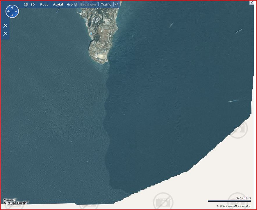 Svøm syd for Gibraltar, så finder du, ifølge en læser, grænsen mellem Middelhavet og Atlanterhavet. Klik for at se et større billede.
