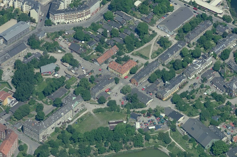 Har du ikke behov for at rende rundt på Christiania, så kan du bare nøjes med at kigge lidt oppefra i Live Search Maps. Klik for at se et større billede.