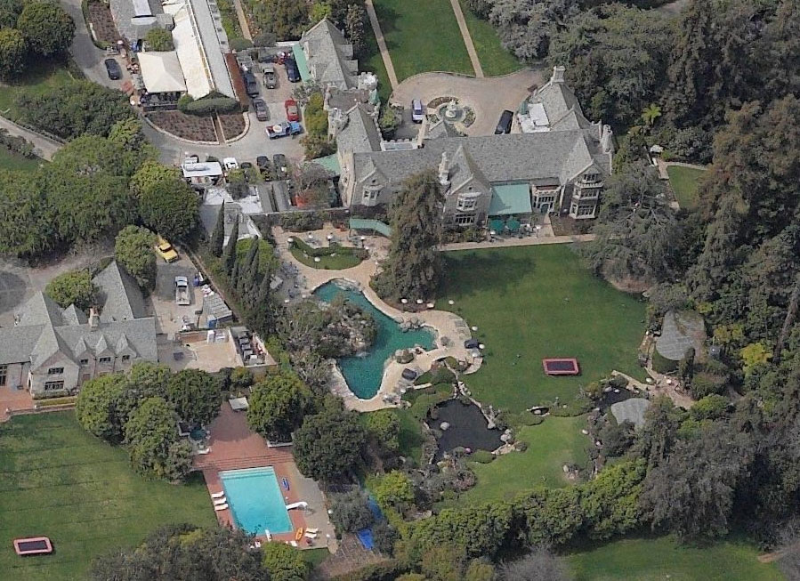 The Playboy Mansion i Beverly Hills. Hm, har Hugh Hefners Playboy Bunnies gemt sig? Klik for at se et større billede.