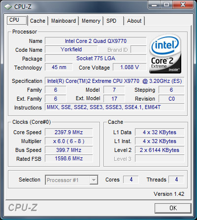 Som Q’et i starten af QX9770 gør det klart, så er QX9770 en quadcoreprocessor.
